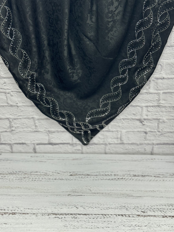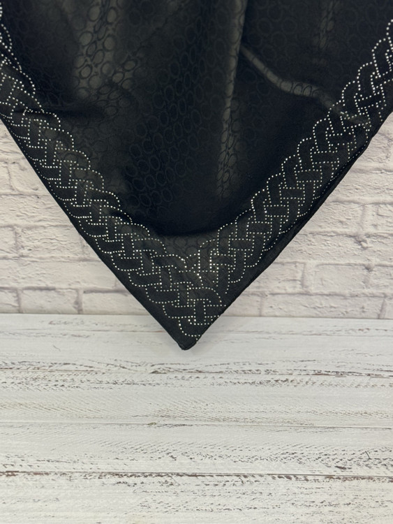 new collection مشکی پرطرفدار روسری ژاکارد مارک نگین دار ترند پرفروش فوق العاده لطیف و شیک قواره: ۱۴۰ جنس ژاکارد و دور دوخت باکیفیت وارداتی دارای ۷ طرح زیبا