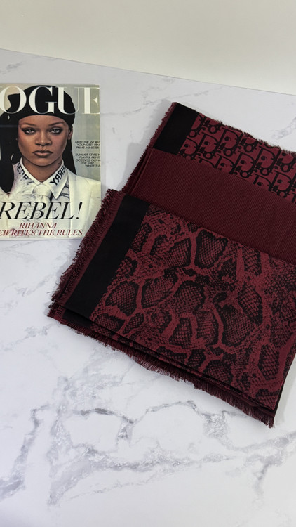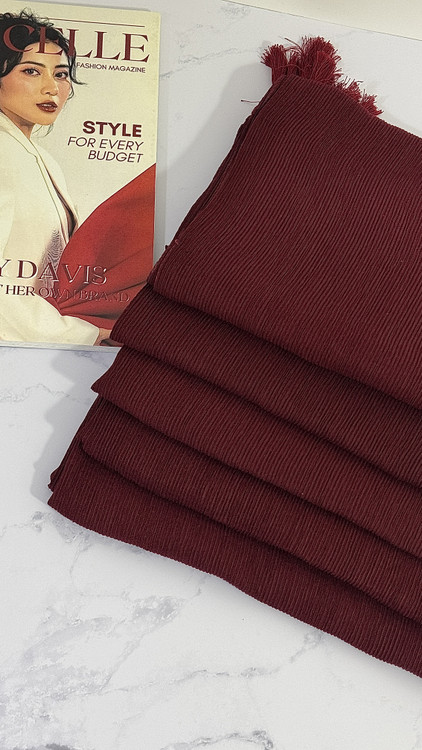 کالکشن زرشکی (چِری) که شامل طرح های پوست ماری و طرح دیور و همچنین شال پلیسه ریز میباشد.