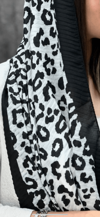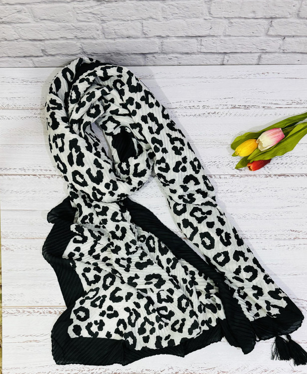 شال پلیسه سیاه سفید طرح پلنگی که از پر طرفدارترین شال که خیییلی پر استفاده است.